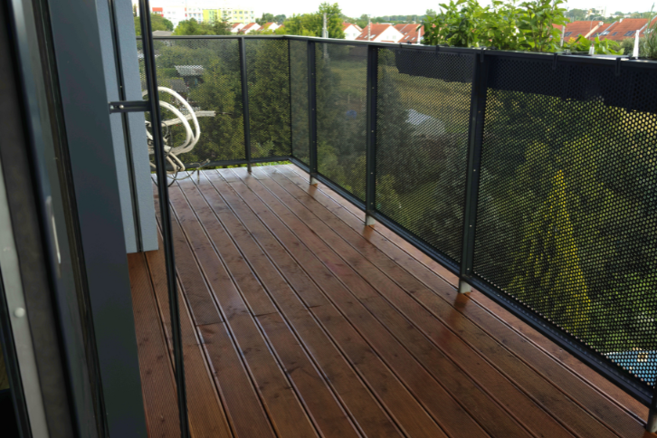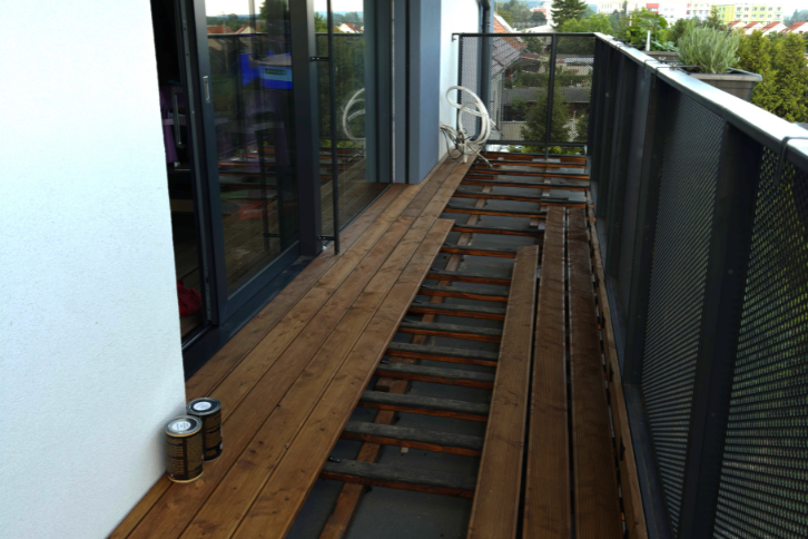 Na závěr jsme přidali třetí vrstvu terasového laku v odstínu dubu, který jsme na zakázku nechali vyrobit. Tento krok dodal terase nejen ochranu proti mechanickému opotřebení, ale i jemný sametový lesk, který zvýraznil přírodní krásu dřeva. Terasa je nyní připravena sloužit majitelům po dlouhá léta, i v náročných podmínkách balkónového prostředí.